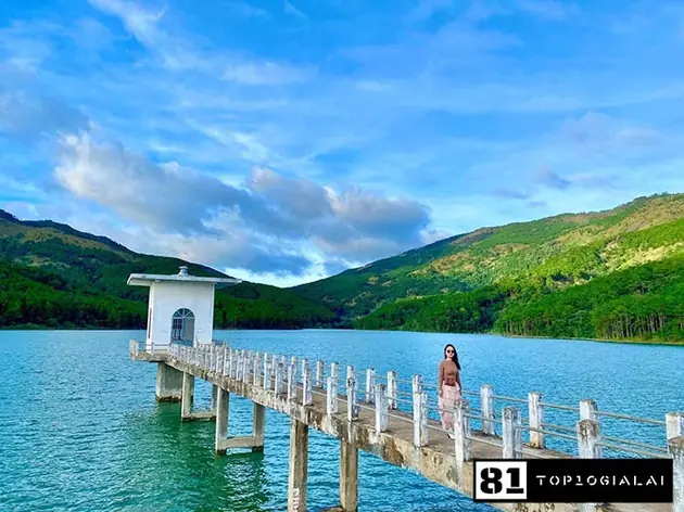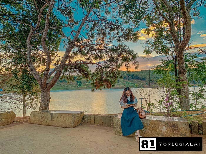 Vào mùa mưa, với nguồn nước dồi dào. Con đập mang vẻ đẹp xanh tươi, trù phú đầy trong trẻo & bình yên. Vào mùa khô, lòng hồ khô cạn, trơ lên những mảnh đất đỏ & những tảng đá lớn màu rêu xanh đẹp mắt. Những nhánh thông được ngâm dưới lòng hồ trong mùa mưa, khi nước đã rút sẽ lộ ra những nhánh thông xám bạc trơ trọi. Một khung cảnh mang đến cho mặt hồ vẻ đẹp ma mị đầy cuốn hút. Sẽ là một điểm check in Gia Lai tuyệt đẹp mà bạn không nên bỏ lỡ.