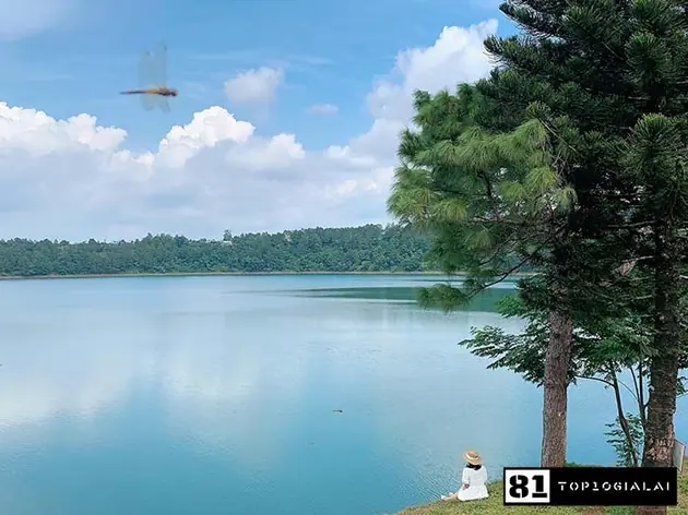 Ngay khi đặt chân đến đây, du khách ngay lập tức bị thu hút bởi màu xanh bất tận của cỏ cây, mây trời & non nước. Hồ có dạng hình bầu dục, có độ sâu khoảng 30m, cùng diện tích khoảng 236ha. Cảnh hồ có vẻ đẹp tựa như một bức tranh tuyệt tác, bạt ngàn hoa sắc tạo nên những nét cuốn hút, huyền bí. Tại đây, mỗi một góc đều là một “backgroud” lí tưởng để bạn chụp hình. Phía cuối con đường có một điểm dừng chân, đây là khu vực ngắm view Biển Hồ tuyệt vời nhất. Một khung trời lãng mạn đầy mê hoặc được dựng lên trước mắt. Phong cảnh sơn thủy hữu tình mà bạn không nên bỏ lỡ nếu muốn lưu giữ những kỉ niệm đẹp tại Gia Lai.
