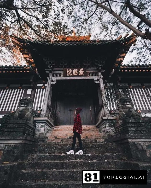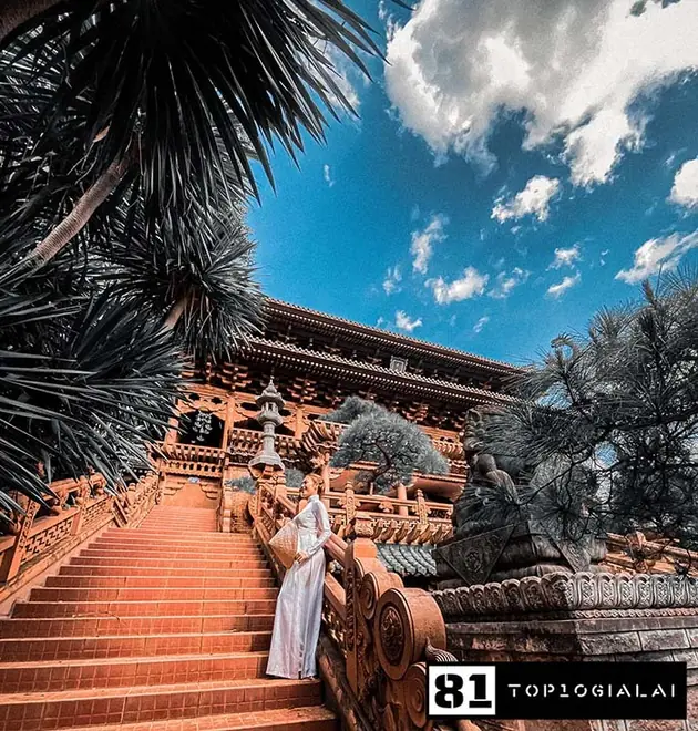 Chùa Minh Thành với kiến trúc mang đậm hơi thở của xứ Phù Tang mang những mái chóp uốn cong điển hình. Một địa điểm check in Gia Lai không nên bỏ qua nếu bạn có dịp đến Phố Núi. Điều khiến chùa Minh Thành trở thành một nơi tham quan thu hút khiến khách du lịch biết đến là nhờ lối kiến trúc xây dựng khá giống với những ngôi đền thờ của “xứ sở Hoa Anh Đào”. Tất cả lối kiến trúc công phu đó đã làm bức tranh của chùa thêm phần kiêu sa – lộng lẫy. Nhìn từ xa giống như một cung điện thu nhỏ giữa lòng phố Pleiku vậy
