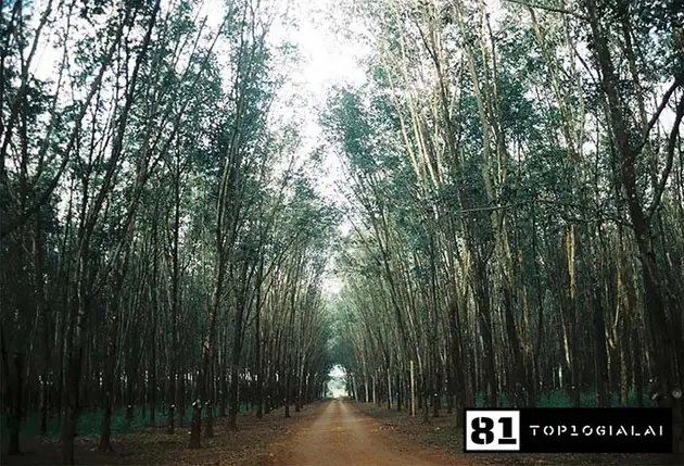 Gia Lai nổi tiếng sở hữu các mảnh đất đỏ bazan màu mỡ thích hợp quy hoạch để trồng rừng cao su. Không những mang đến những lợi ích về kinh tế, mà cánh rừng cao su còn ấn tượng & quyến rũ bởi không gian đẹp kỳ lạ như một góc trời Âu trong mùa trút lá. Rừng cao su mang những vẻ đẹp riêng biệt theo từng mùa. Con đường có khi đầy thảm lá rụng, hay sắc màu của lá xanh ngả sang úa vàng rồi chuyển dần sang màu đỏ rực rỡ. Tạo ra vẻ đẹp khác lạ mà khó nơi nào sở hữu được