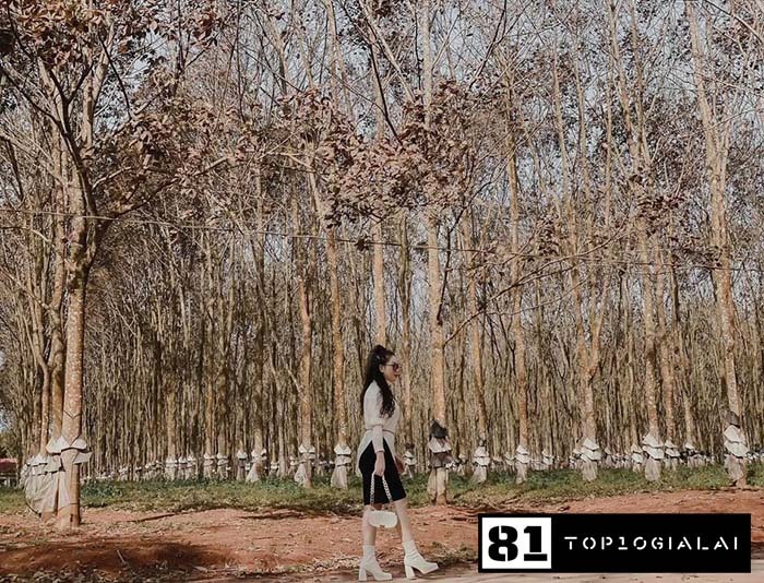Điểm khác biệt & mang nét đặc trưng của vùng cao su Tây Nguyên so với các nơi khác là mùa đông nhiệt độ khá thấp. Nên thân cao su có nhiều địa y & rêu sống ký sinh thành từng mảng màu trắng. Còn được ví von như “hàng bạch dương” tuyệt đẹp làm xao lòng mọi du khách. Những con đường trải dài thẳng tăm tắp cứ tiếp nối theo nhau. Nếu bạn bước vào những con đường không có lối rẽ này, “dám chắc” rằng bạn sẽ không muốn bước ra đâu. Vì chẳng khác nào đang lạc vào một bức tranh phong thủy hữu tình vậy. Đây sẽ là địa điểm check in Gia Lai thú vị mà bạn nên thử ghé thăm một lần.